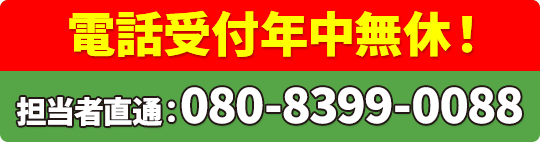 - 電話:072-682-0088(代表) 080-8399-0088(担当者直通電話)